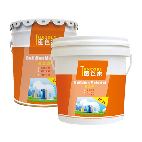 产品特点:彩金漆是以纯丙烯酸聚合物为基料和优质的进口金属颜料精制而成的水性金属漆,具有强烈的金属质感效果,丰富的梦幻色彩和高雅的装饰性,耐候性和持久性,卓越的耐沾污效果和透气功能,完全可以媲美铝塑板。