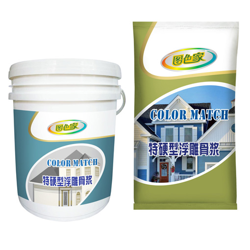 特硬型浮雕骨浆是由特种改良聚合物、添加剂、填料等精制而成。具有高硬度、优异的耐水性、耐碱性、防霉性、耐候性和抗粉化性。能喷涂多种富有艺术色彩的立体花纹图案。